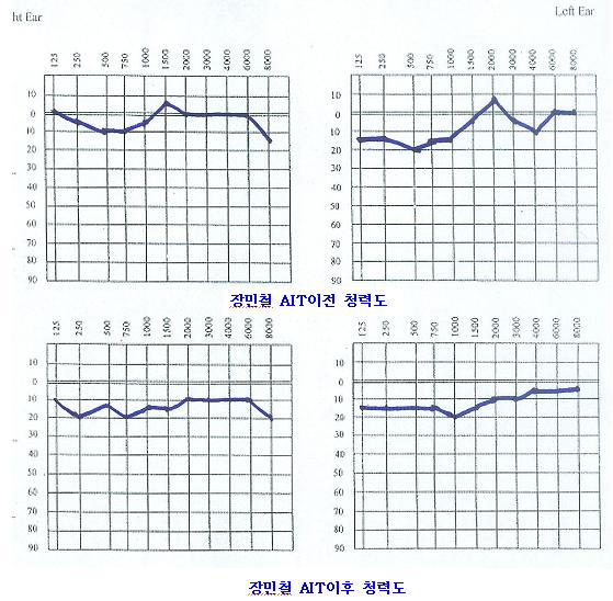 û°¢°Ë»ç °á°ú, û°¢ÀÇ ±âº¹ÀÌ ½ÉÇϰí, ¿Ö°îµÇ¾î ÀÖ¾úÀ¸¸ç, ƯÈ÷ ¿ÞÂÊ ±Í 2000Hz¿¡¼´Â û½Å°æÀ» Å©°Ô °Å½½¸± Á¤µµ·Î ÀÎÁ¢ Á֯ļö¿ÍÀÇ Â÷À̰¡ ½ÉÇϰí, ¹Î°¨ÇÑ Ã»°¢ ÇüÅ¿´½À´Ï´Ù. . û°¢ÇüŰ¡ ÇÊÅÍ´ë»ó¿¡ ÇØ´çµÇ¾î¼ 2000Hz¿¡ ÇÊÅ͸¦ ¼³Á¤ÇÏ¿© Ä¡·á¸¦ ¸¶ÃƽÀ´Ï´Ù(ÇÊÅÍ ±â´ÉÀÌ ¾ø´Â ÀåÄ¡ ÁÖÀÇ). Æò¼Ò¿¡ ÇÏ·ç¿¡ ¸î½Ã°£¾¿ À̾îÆùÀ» ³¢°í ÇÏ´ø °ÔÀÓÀ» ¿ÏÀüÈ÷ ÁÙÀÏ ÀÚ½ÅÀÌ ¾ø´Ù°í AIT¸¦ °ÅºÎÇÏ¿´½À´Ï´Ù. ÇÏ¿© AIT¸¦ ÇÏ´Â µ¿¾ÈÀº ÇìµåÆù, À̾îÆù Âø¿ë ¾ÈÇϱâ·Î, AIT ÀÌÈÄ¿¡´Â Á¶±Ý¾¿ ÁÙÀ̱â·Î ¾à¼ÓÀ» ÇÏ¿´½À´Ï´Ù. ´ë½Å ÇâÈÄ Ã»°¢°Ë»ç¸¦ Á¤±âÀûÀ¸·Î ¹Þ±â·Î ¾à¼ÓÀ» ÇÏ¿´½À´Ï´Ù.